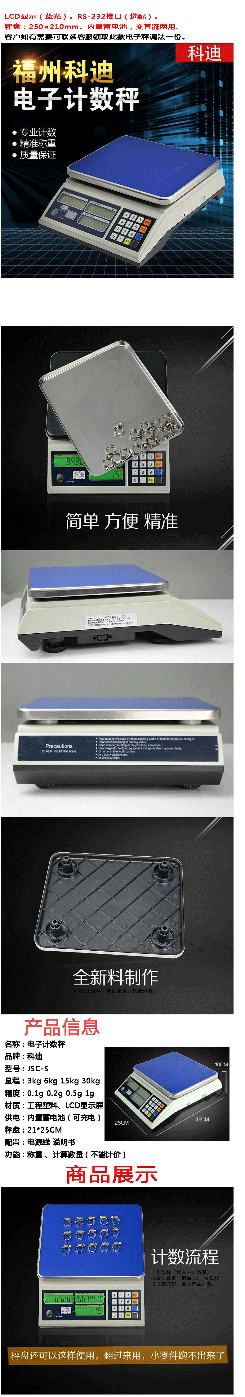 LCD顯示(藍(lán)光)。RS-232接口(選配)。秤盤(pán):250x210mm。內(nèi)置蓄電池,交直流兩用。