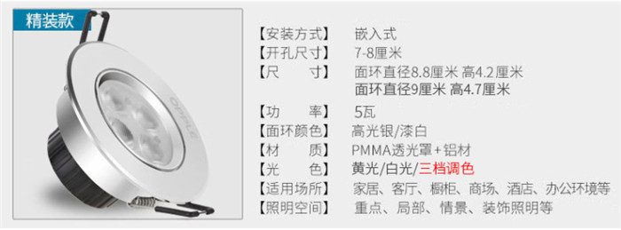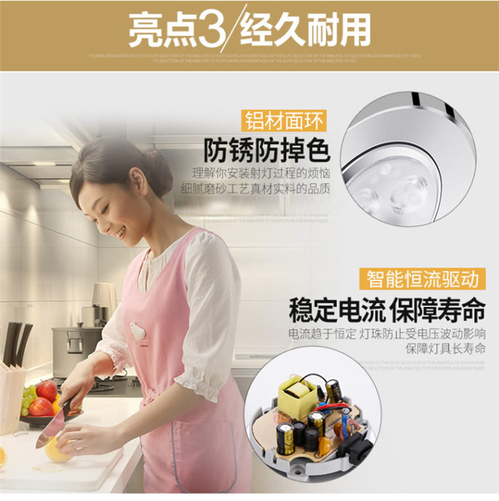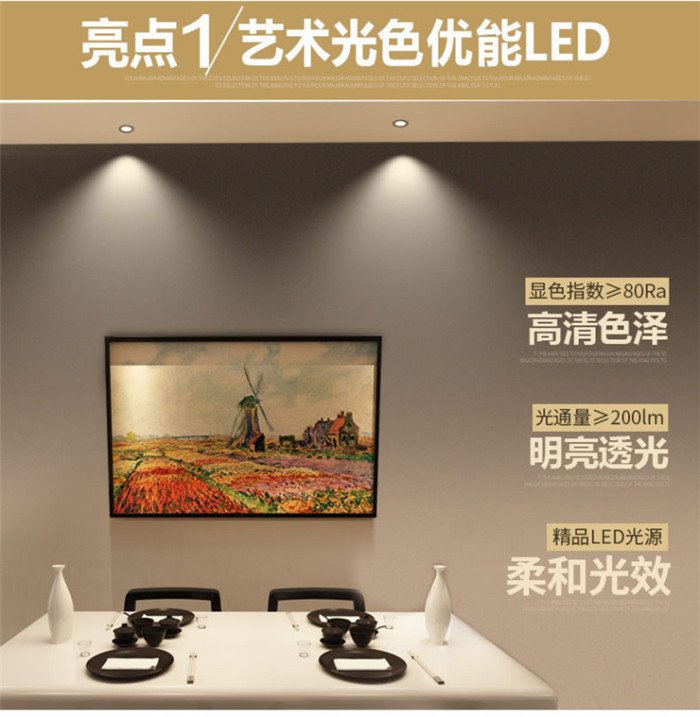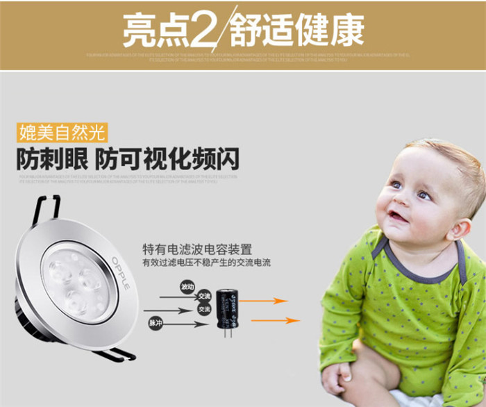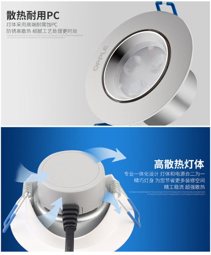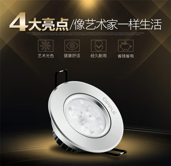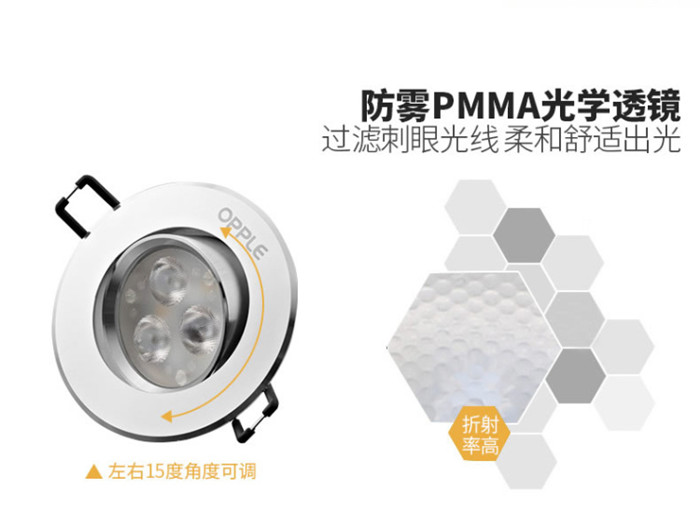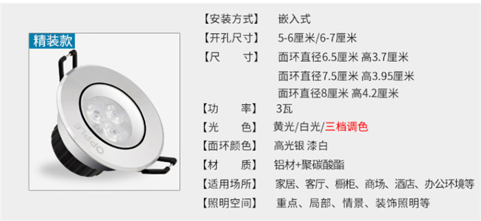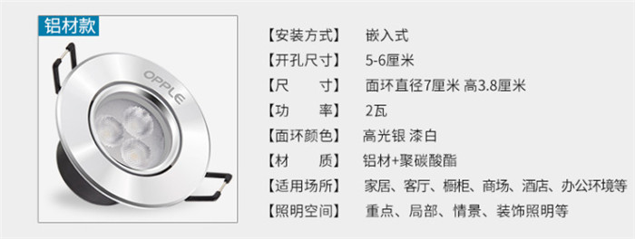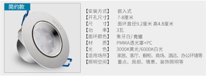 歐普照明LED射燈3W全套天花牛眼嵌入式過(guò)道走廊客廳孔燈 象牙白3瓦白光 開孔7-8cm