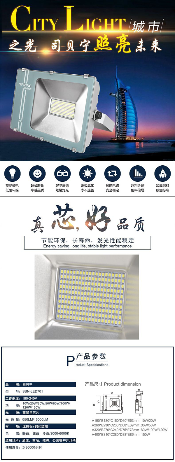 司貝寧燈具 led707 方形投光燈