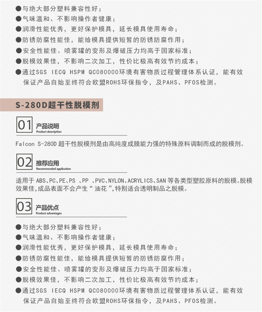 香港鷹牌Falcon S-280脫模劑