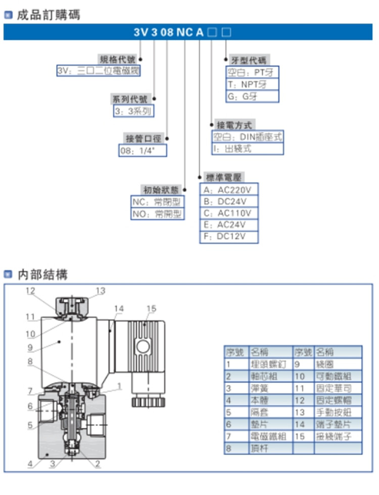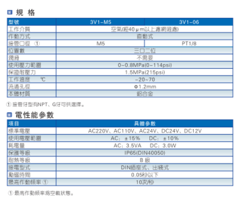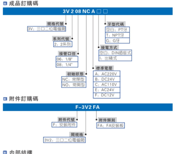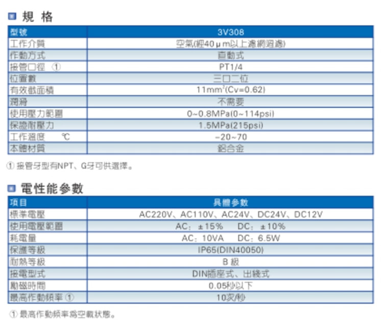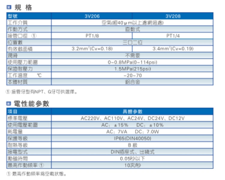 亞德客(AIRTAC)氣動(dòng)元件電磁閥3通3V1,3V2,3V3系列