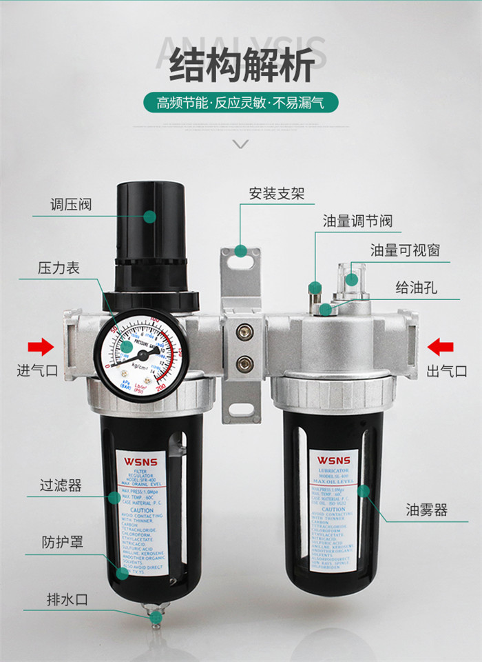山耐斯油水分離器空壓機(jī)氣泵吹塵用氣源處理器過(guò)濾器油霧器二聯(lián)件