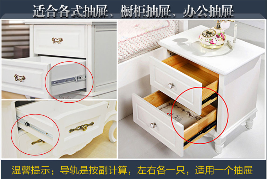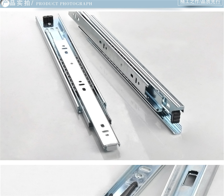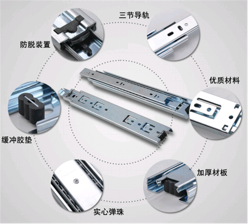 三節(jié)抽屜冷軋鋼軌道靜音抽屜導軌辦公電腦桌滾珠滑軌