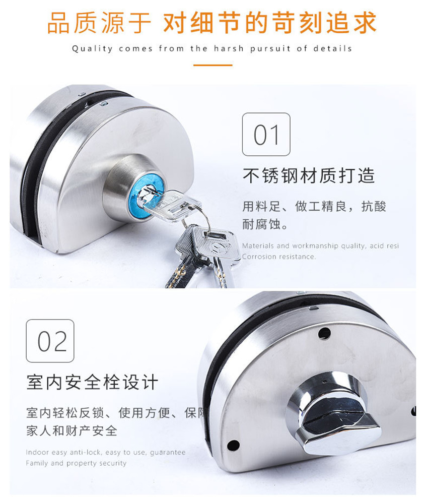 不銹鋼玻璃門鎖 鎖推拉玻璃鎖單雙門半圓型無框玻璃門鎖