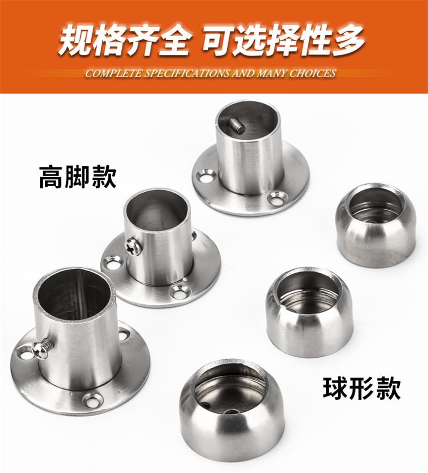 加厚重型不銹鋼法蘭座衣柜桿配件高腳圓管座托
