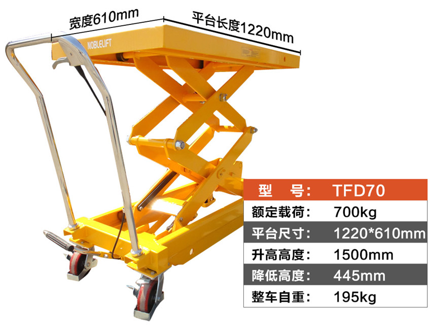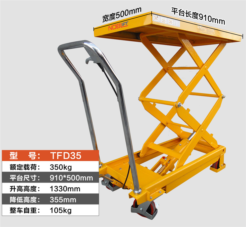 諾力(NOBLIFT) 諾力手動(dòng)平臺(tái)車(chē) 移動(dòng)液壓升降作業(yè)臺(tái)手推模具臺(tái)車(chē)TFD35升降叉車(chē)