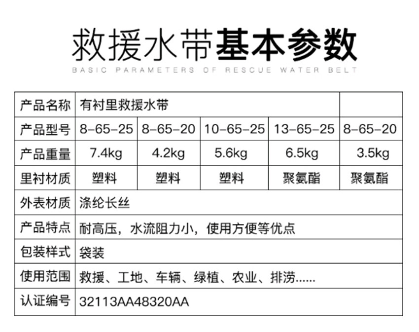 消防水帶8/10/13型65mm口徑2.5寸橡膠耐磨水帶DN65型20/25米消防水帶含接扣
