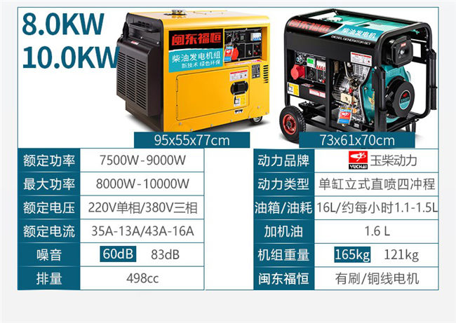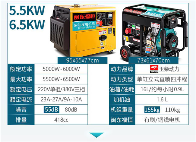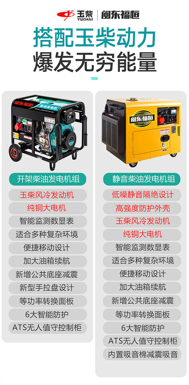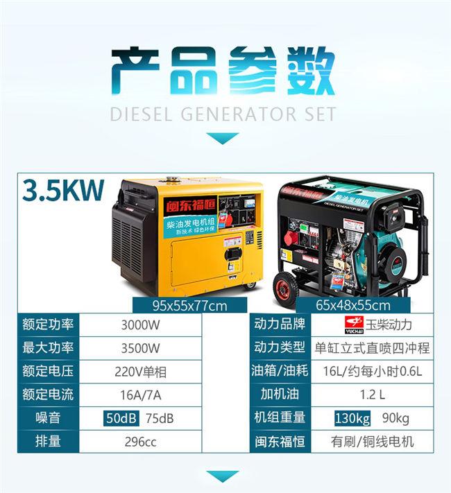 玉柴動力3/5/6/8KW10千瓦小型家用3000W柴油發(fā)電機組低噪音單相220V三相380V純銅
